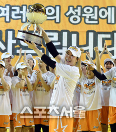 [현장속으로] 얼떨떨한 첫 우승, 국민은행 "통합우승 뒤 펑펑 울래요"
