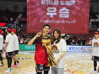안양 찾은 고아라, "배병준-KGC, 우리은행처럼 통합 우승 응원"