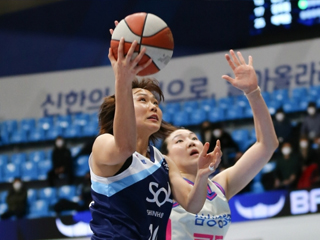 [BK 리뷰] '삼각 편대 우위' 신한은행, 접전 끝에 삼성생명에 승리... 5연승 성공