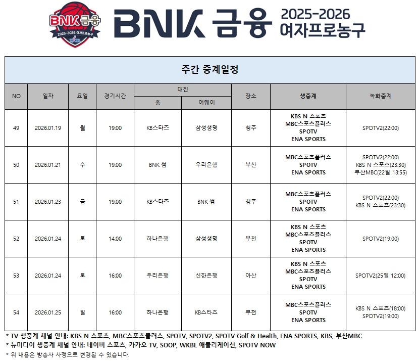 2026년 1월 셋째주 중계일정
