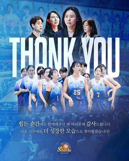 #신한은행 Thank You Fans 작성일: 2026-04-02 조회: 90 페이스북 공유 트위터 공유 카카오스토리 공유 Thank You Fans 힘든 순간에도 함께해주신 팬 여러분께 감사드립니다.다음 시즌에는 더 성장한 모습으로 찾아뵙겠습니다!#신한은행에스버드 [자세히보기]