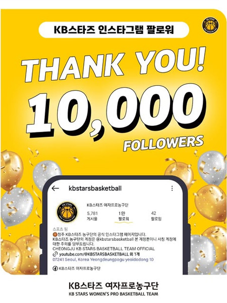 #KB스타즈 팔로워 1만 작성일: 2026-04-03 조회: 76 페이스북 공유 트위터 공유 카카오스토리 공유 KB스타즈 팔로워 1만팬 여러분 고맙습니다KB스타즈 인스타그램 『팔로워 1만』 돌파! [자세히보기]