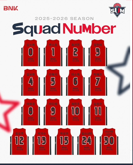 #BNK 썸2025-2026시즌 BNK 썸 선수단 등번호_신규유니폼 ver 작성일 2025-10-17 조회 141 공유하기 페이스북 공유 트위터 공유 카카오스토리 공유 2025-2026시즌 BNK 썸 선수단 등번호_신규유니폼 ver#BNK썸 #BNK썸여자프로농구단 #BNK부산은행 [자세히보기]