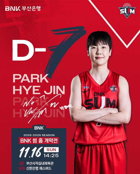#BNK 썸홈 개막전 D-7 작성일 2025-11-09 조회 11 공유하기 페이스북 공유 트위터 공유 카카오스토리 공유 2025-2026시즌 BNK 썸홈 개막전 D-7일시 : 2025년 11월 16일(일) 14:25장소 : 부산사직실내체육관VS 신한은행 에스버드#BNK썸 #BNK썸여자프로농구단 #BNK부산은행 #박혜진 [자세히보기]