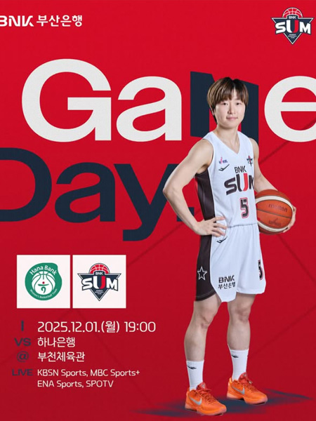 #BNK 썸GAME DAY 작성일 2025-12-01 조회 47 공유하기 페이스북 공유 트위터 공유 카카오스토리 공유 2025-2026시즌 BNK 썸GAME DAY일시 : 2025년 12월 1일(월) 19:00장소 : 부천체육관VS 하나은행중계 : KBSN Sports, MBC Sports+, ENA Sports, SPOTV#BNK썸 #BNK썸여자프로농구단 #BNK부산은행 [자세히보기]