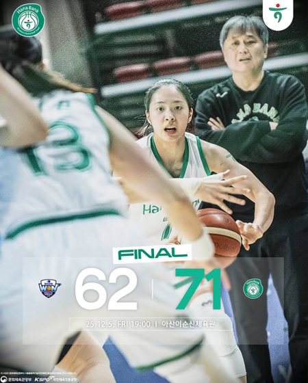 #하나은행MATCH RESULT 작성일 2025-12-05 조회 42 공유하기 페이스북 공유 트위터 공유 카카오스토리 공유 2025-2026시즌 하나은행 여자농구단MATCH RESULT우리은행 62-71 하나은행#하나은행여자농구단 #하나은행 #하나금융그룹 #농구 #여자농구 #여농 #경기결과 [자세히보기]