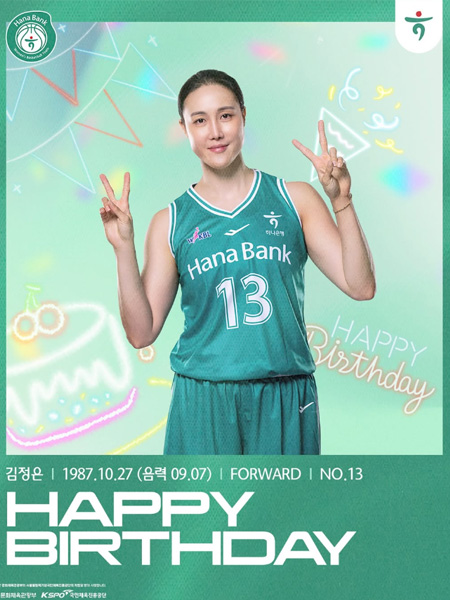 #하나은행 HAPPY BIRTHDAY! 작성일: 2025-10-27 조회: 145 페이스북 공유 트위터 공유 카카오스토리 공유 HAPPY BIRTHDAY!오늘은 김정은 선수의 생일입니다!생일을 함께 축하해 주세요#하나은행여자농구단 #하나은행 #하나금융그룹 #농구 #여자농구 #여농 #WKBL #HappyBirthday [자세히보기]
