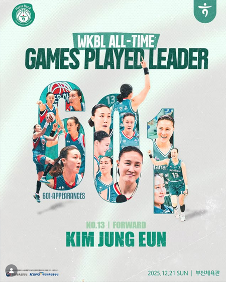 #하나은행 RECORD 작성일: 2025-12-21 조회: 91 페이스북 공유 트위터 공유 카카오스토리 공유 RECORD? 하나은행 김정은 선수가개인 통산 601경기 출전을 달성했습니다(역대 1위)WKBL 최초의 기록을 써내려가는 리빙 레전드이제는 하나하나가 기록이 되고 역사가 됩니다@jungeunkim13#하나은행여자농구단 #하나은행 #하나금융그룹 #여자농구 #여농 [자세히보기]