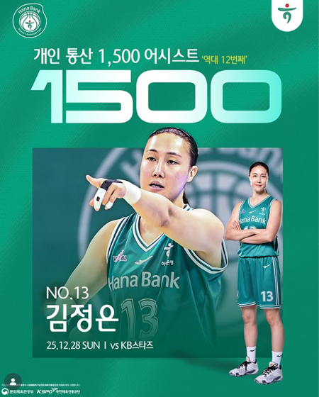 #하나은행 RECORD 작성일: 2025-12-28 조회: 311 페이스북 공유 트위터 공유 카카오스토리 공유 RECORD? NO.13 김정은개인 통산 1,500 어시스트 달성 (역대 12번째)25.12.28 SUN (vs KB스타즈)#하나은행여자농구단 #하나은행 #하나금융그룹 #농구 #여자농구 [자세히보기]