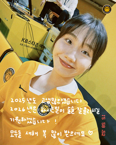 #KB스타즈 2026년은 하시는 일이 술술 잘 풀리시길 기원하겠습니다! 작성일: 2026-01-01 조회: 380 페이스북 공유 트위터 공유 카카오스토리 공유 KB스타즈 | 새해 복 많이 받으세요2025년도 고생 많으셨습니다.2026년은 하시는 일이 술술 잘 풀리시길기원하겠습니다!모두들 새해 복 많이 받으세요KB STARS No.6 이윤미#KB스타즈 ㅣ #No6 ㅣ #이윤미#2026년 #새해인사? [자세히보기]
