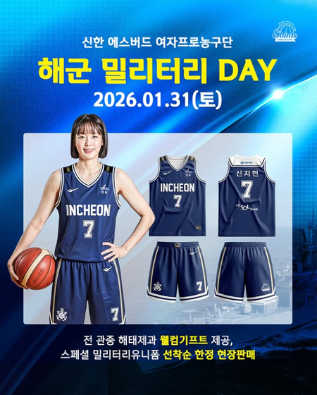 #신한은행 해군 밀리터리 DAY 작성일: 2026-01-28 조회: 283 페이스북 공유 트위터 공유 카카오스토리 공유 해군 밀리터리 DAY신한은행 에스버드 여자프로농구단과대한민국 해군이 함께합니다!2026.01.31(토) 14시인천 도원체육관전 관중 해태제과 웰컴기프트 제공스페셜 밀리터리 유니폼 선착순 현장 한정 판매인천에서 만나는 특별한 하루놓치지 마세요!#신한은행에스버드#해군밀리터리데이#wkbl [자세히보기]