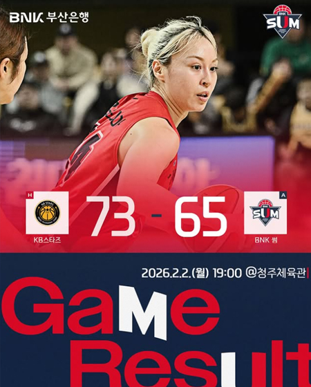 #BNK 썸 2026.2.2.(월) KB스타즈와의 경기 결과입니다 작성일: 2026-02-02 조회: 46 페이스북 공유 트위터 공유 카카오스토리 공유 2026.2.2.(월) KB스타즈와의 경기 결과입니다#BNK썸 #BNK썸여자프로농구단 #BNK부산은행 [자세히보기]