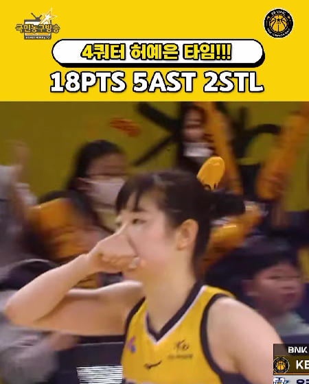 #KB스타즈 허예은 타임!!! 4쿼터 11득점!!! 작성일: 2026-02-07 조회: 93 페이스북 공유 트위터 공유 카카오스토리 공유 KB스타즈| 허예은 타임!!! 4쿼터 11득점!! 허예은, 4쿼터 승리의 여신!! 18득점 5어시스트 3리바운드 2스틸 허예은 ㅣ #KB스타즈 ㅣ #국민농구방송 #2025_2026시즌 #허예은농구 [자세히보기]