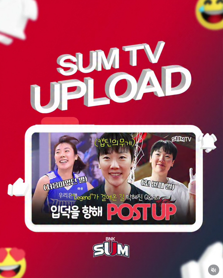 #BNK 썸 BNK 썸 여자프로농구단 유튜브 업로드! 작성일: 2026-02-13 조회: 127 페이스북 공유 트위터 공유 카카오스토리 공유 BNK 썸 여자프로농구단 유튜브 업로드!인스타그램 스토리 및 하이라이트에서 접속하실 수 있습니다#BNK여자프로농구단 #BNK부산은행 [자세히보기]