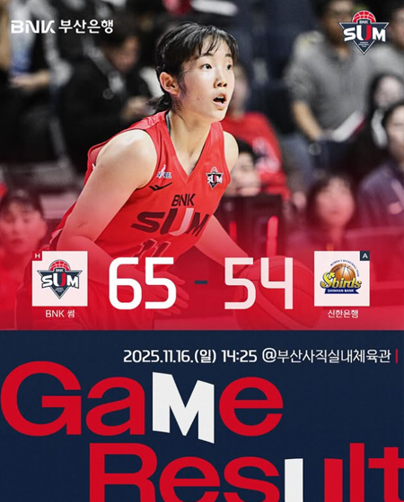 #BNK 썸2025.11.16.(일) 신한은행과의 경기 결과입니다 작성일 2025-11-16 조회 36 공유하기 페이스북 공유 트위터 공유 카카오스토리 공유 2025.11.16.(일) 신한은행과의 경기 결과입니다25-26시즌 첫 경기 기분 좋은 승리#BNK썸 #BNK썸여자프로농구단 #BNK부산은행 [자세히보기]