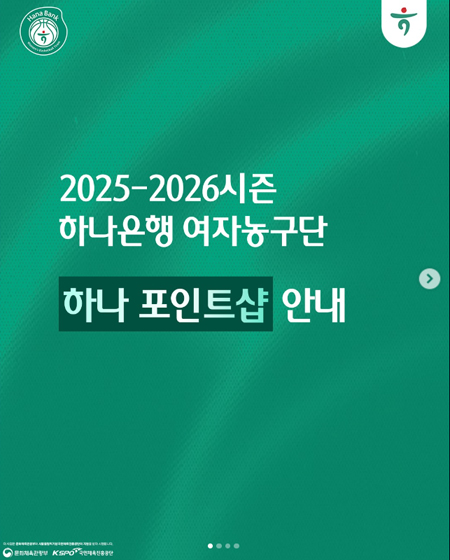 #하나은행하나 포인트샵 안내 작성일 2025-11-17 조회 51 공유하기 페이스북 공유 트위터 공유 카카오스토리 공유 하나 포인트샵 안내새롭게 리뉴얼된 하나 포인트샵에서2025-2026시즌 MD와 멤버십 구성품을 만나보세요#하나은행여자농구단 #하나은행 #하나금융그룹 [자세히보기]
