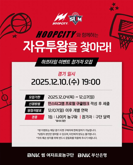 - 경품 : 1등 : 나이키 농구화*훕시티 협찬 / 참가자 : 구단 달력