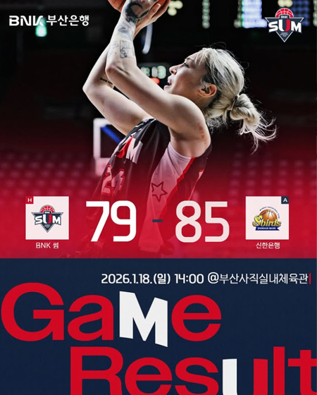 #BNK 썸2026.1.18.(일) 신한은행과의 경기 결과입니다 작성일 2026-01-18 조회 219 공유하기 페이스북 공유 트위터 공유 카카오스토리 공유 2026.1.18.(일) 신한은행과의 경기 결과입니다#BNK썸 #BNK썸여자프로농구단 #BNK부산은행 [자세히보기]