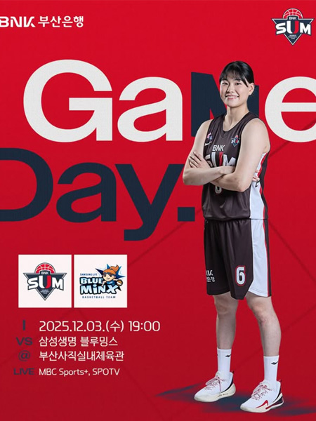 #BNK 썸 GAME DAY 작성일: 2025-12-03 조회: 38 페이스북 공유 트위터 공유 카카오스토리 공유 2025-2026시즌 BNK 썸GAME DAY일시 : 2025년 12월 3일(수) 19:00장소 : 부산사직실내체육관VS 삼성생명 블루밍스중계 : MBC Sports+, SPOTV#BNK썸 #BNK썸여자프로농구단 #BNK부산은행 [자세히보기]