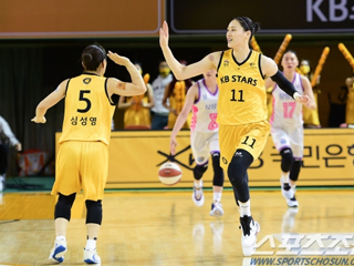 휴식기 이후 첫 경기에서 KB가 삼성생명을 완파했다. 87-70 완승. KB는 이미 전반을 45-28로 마치며 승리를 예약했고, 후반에도 압도적인 경기력을 자랑하며 쉬운 승리를 거뒀다. ''약속의 원투펀치'' 박지수와 강이슬은 막강했다.