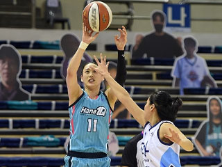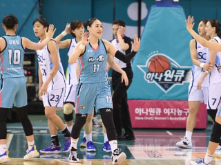 부천 하나원큐는 22일 부천체육관에서 열린 2020-2021 KB 리브 모바일 여자프로농구 정규경기 최종전서 인천 신한은행 에스버드에 95-80으로 완승했다. 6라운드 전승을 달성했다. 5연승. 11승19패, 5위로 시즌을 마쳤다. 신한은행은 2연패했다.
