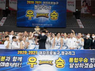 아산 우리은행이 2020~21 여자프로농구 정규리그 우승을 확정했다. 우리은행은 21일 부산에서 열린 BNK썸과의 정규리그 최종전에서 55-29로 대승을 거두로 정규리그 22승8패로 1위를 굳혔다.