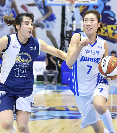 우리은행이 신한은행을 상대로 연승 행진을 이어갔다. 아산 우리은행 위비는 27일 인천도원체육관에서 열린 신한은행 2017-2018 여자프로농구 정규리그 인천 신한은행 에스버드와의 경기에서 67-49로 이겼다. 이날 승리로 우리은행은 6연승의 상승세를 이어가며 21승 4패로 단독 선두 체제를 굳건히 했다