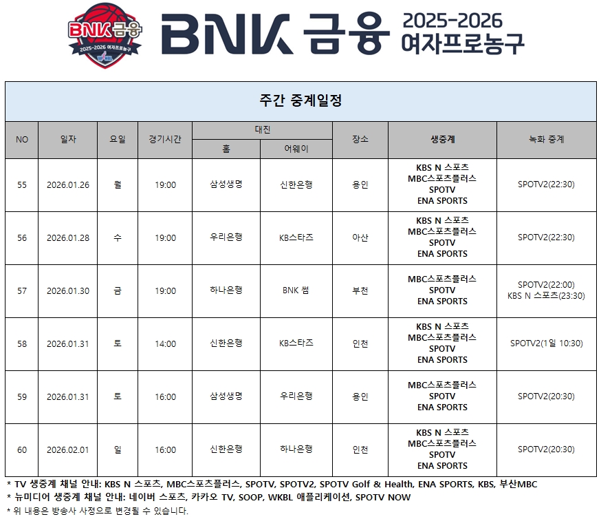 2026년 1월 넷째주 중계일정