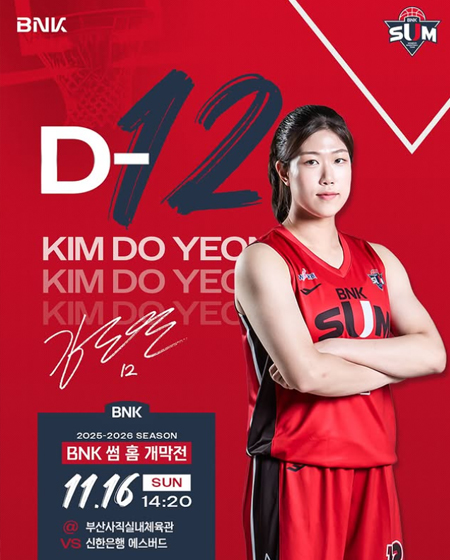 #BNK 썸홈 개막전 D-12 작성일 2025-11-04 조회 30 공유하기 페이스북 공유 트위터 공유 카카오스토리 공유 2025-2026시즌 BNK 썸홈 개막전 D-12일시 : 2025년 11월 16일(일) 14:20장소 : 부산사직실내체육관VS 신한은행 에스버드#BNK썸 #BNK썸여자프로농구단 #BNK부산은행 #김도연 [자세히보기]