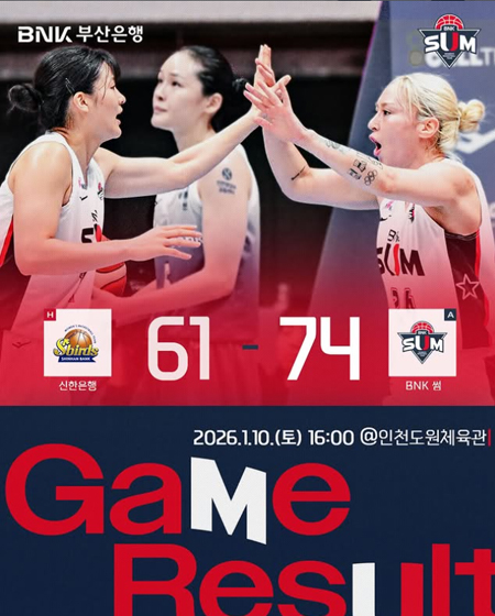 #BNK 썸2026.1.10.(토) 신한은행과의 경기 결과입니다 작성일 2026-01-10 조회 41 공유하기 페이스북 공유 트위터 공유 카카오스토리 공유 2026.1.10.(토) 신한은행과의 경기 결과입니다2026년 첫 경기 WIN!기분 좋은 스타트#BNK썸 #BNK썸여자프로농구단 #BNK부산은행 [자세히보기]