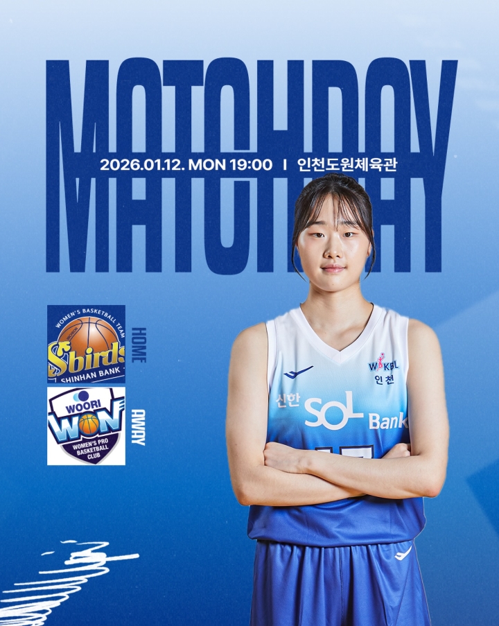 #신한은행MATCH DAY 작성일 2026-01-12 조회 17 공유하기 페이스북 공유 트위터 공유 카카오스토리 공유 MATCH DAY26.01.12 (월) 19시vs 아산 우리은행인천 도원체육관#신한은행에스버드 [자세히보기]