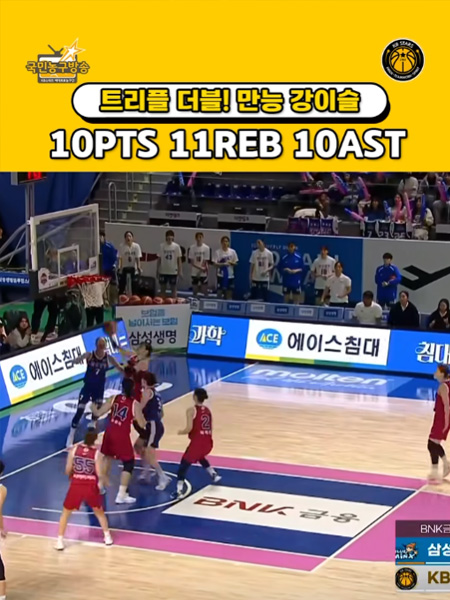 #KB스타즈강이슬, 트리플 더블!!!!!!! 작성일 2026-01-12 조회 13 공유하기 페이스북 공유 트위터 공유 카카오스토리 공유 KB스타즈 강이슬, 트리플 더블!!!!!!!? 강이슬!! 개인 통산 2호 트리플 더블!!! 10득점 11리바운드 10어시스트 ? #강이슬 ㅣ #KB스타즈 ㅣ #국민농구방송 #2025_2026시즌 #트리플더블 [자세히보기]