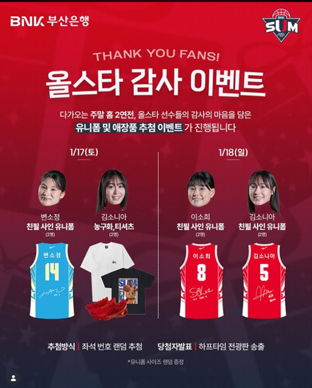 올스타 감사 이벤트다가오는 주말 홈 2연전(1/17,1/18)동안