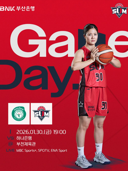 #BNK 썸GAME DAY 작성일 2026-01-30 조회 40 공유하기 페이스북 공유 트위터 공유 카카오스토리 공유 2025-2026시즌 BNK 썸GAME DAY일시 : 2026년 1월 30일(금) 19:00장소 : 부천체육관VS 하나은행중계 : MBC Sports+, SPOTV, ENA Sports#BNK썸 #BNK썸여자프로농구단 #BNK부산은행 [자세히보기]