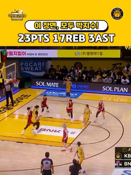 #KB스타즈박지수, 4경기 연속 더블더블! 작성일 2026-02-03 조회 17 공유하기 페이스북 공유 트위터 공유 카카오스토리 공유 KB스타즈 박지수! 박지수!! 박지수!!!? 박지수, 4경기 연속 더블더블! 22득점/17리바운드/3어시스트/1스틸/1블록 #박지수 ㅣ #KB스타즈 ㅣ #국민농구방송 #2025_2026시즌 #정규리그 [자세히보기]