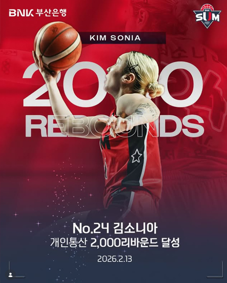 #BNK 썸SUM 레코드 작성일 2026-02-13 조회 23 공유하기 페이스북 공유 트위터 공유 카카오스토리 공유 SUM 레코드 BNK 썸 퀸!김소니아 선수가 개인 통산 2,000리바운드를 달성했습니다!*역대 20번째코트 위에서 증명하는 에이스의 존재감#BNK썸 #BNK썸여자프로농구단 #BNK부산은행 #김소니아 [자세히보기]