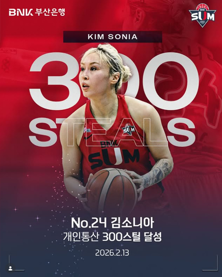 #BNK 썸SUM 레코드 작성일 2026-02-13 조회 27 공유하기 페이스북 공유 트위터 공유 카카오스토리 공유 SUM 레코드BNK 썸 퀸!김소니아 선수가 개인 통산 300스틸을 달성했습니다!*역대 31번째승리의 날, 값진 기록까지#BNK썸 #BNK썸여자프로농구단 #BNK부산은행 #김소니아 [자세히보기]