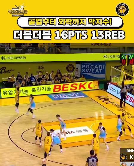 #KB스타즈박지수, 7경기 연속 ’더블더블‘ 작성일 2026-02-15 조회 19 공유하기 페이스북 공유 트위터 공유 카카오스토리 공유 KB스타즈 | 박지수, 7경기 연속 ’더블더블‘ 박지수, 오늘은 3점포도 터졌다!! 16득점(2)/13리바운드/3어시스트/2스틸/1블록 #박지수 ㅣ #KB스타즈 ㅣ #국민농구방송 #2025_2026시즌 #정규리그 [자세히보기]