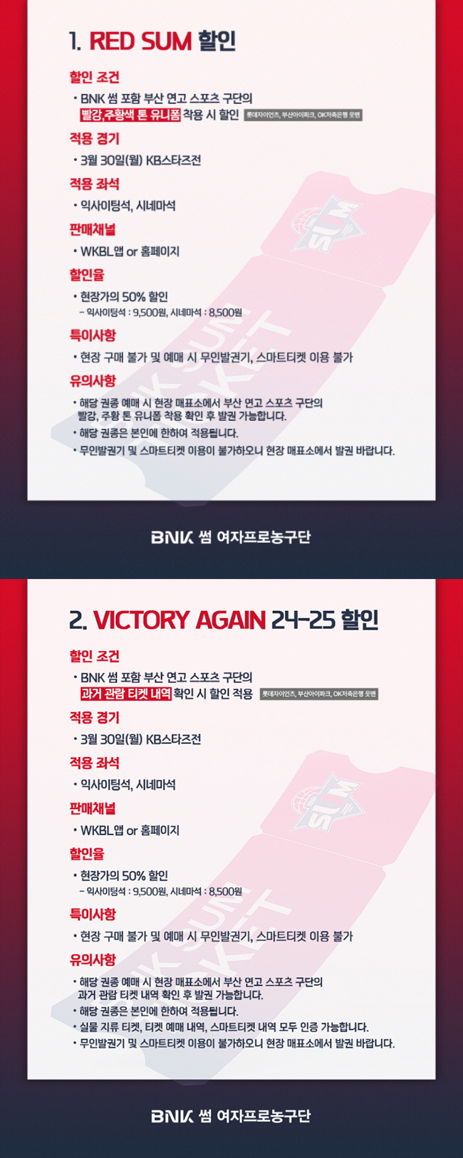 3/30(월) 경기 티켓 할인 안내
