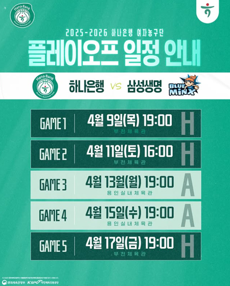 2025-2026시즌 하나은행 여자농구단 플레이오프 일정