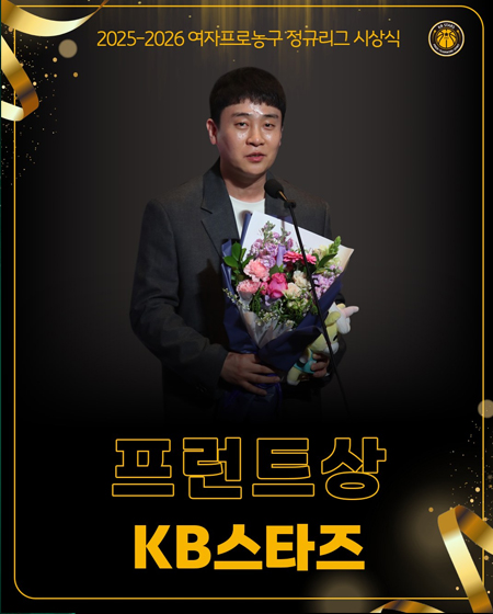 #KB스타즈앞으로도 팬 여러분의 자부심이 되는 구단이 되겠습니다! 작성일 2026-04-06 조회 25 공유하기 페이스북 공유 트위터 공유 카카오스토리 공유 KB스타즈 | 프런트상「2025-2026시즌 여자프로농구 정규리그 시상식」KB스타즈 프런트상팬 여러분께서 주신 가장 뜻깊은 상앞으로도 팬 여러분의 자부심이 되는 구단이 되겠습니다!고맙습니다!Photo day in_ 2026.04.06#KB스타즈 ㅣ #정규리그시상식 ㅣ #프런트상#2025_2026시즌 #정규리그 #시상식 #현장스케치#팬여러분 #감사합니다 #고맙습니다#압도적인 #응원 #사랑 #열정 #관심 #항상감사합니다#플레이오프에서뵙겠습니다 #더열심히하겠습니다 [자세히보기]