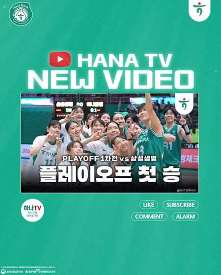 #하나은행YOUTUBE NEW VIDEO 작성일 2026-04-10 조회 16 공유하기 페이스북 공유 트위터 공유 카카오스토리 공유 YOUTUBE NEW VIDEO봄농구를 시~작 하겠습니다~~~ | 04.09 Playoff 스케치포스트시즌에서 가장 중요한게 1차전 승리라면서요?중요할 때 폭발한 예림과 진영의 활약을 모아왔습니다!YouTube ’하나TV[하나은행 여자농구단]‘에서 확인하세요!#하나은행여자농구단 #하나은행 #하나금융그룹 #농구 #여자농구 [자세히보기]