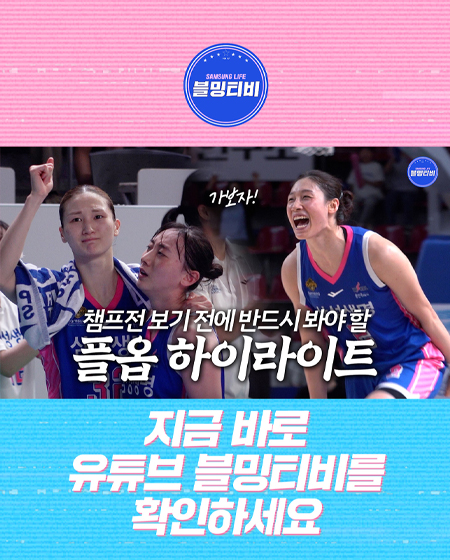 #삼성생명플레이오프 하이라이트만 모았습니다 작성일 2026-04-21 조회 19 공유하기 페이스북 공유 트위터 공유 카카오스토리 공유 플레이오프 하이라이트만 모았습니다 풀영상은 YOUTUBE '블밍티비'에서 확인하세요! #챔프전 #여자농구플레이오프 #플옵#블밍릴스 #릴스 #블밍티비 #블밍캠#삼성생명 #삼성생명블루밍스#프로스펙스 #GOBLUEMINX#WKBL #여자농구?? [자세히보기]